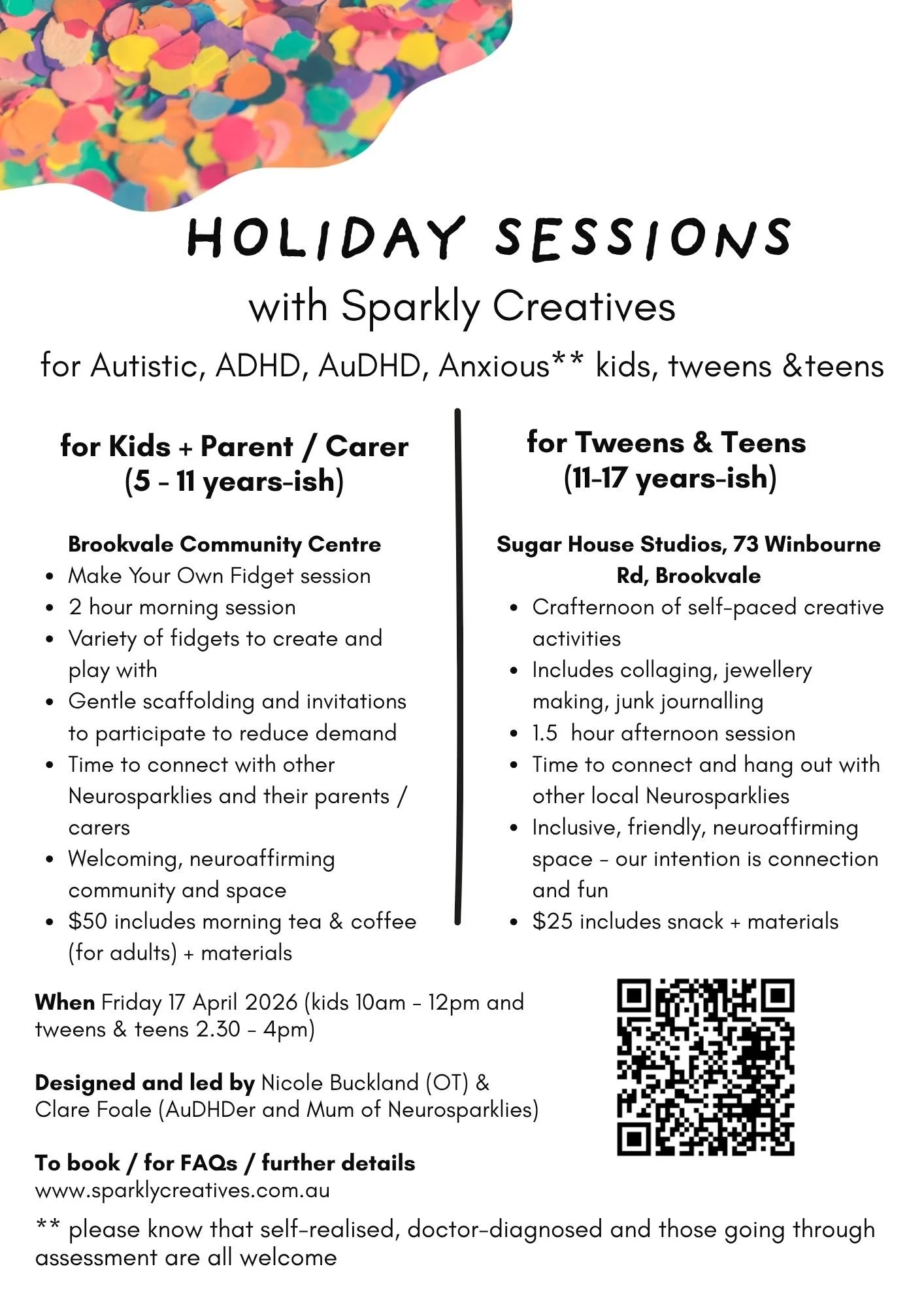 Holiday Sessions for Autistic, ADHD, AuDHD, Anxious * kids, tweens, teens + parents / carers